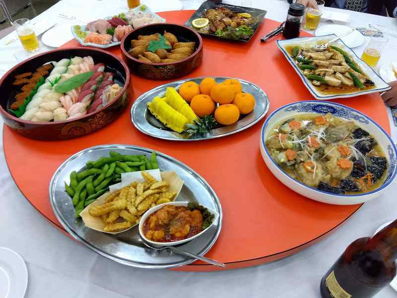 テーブルの上には、円卓が置かれ料理が並んでいます。