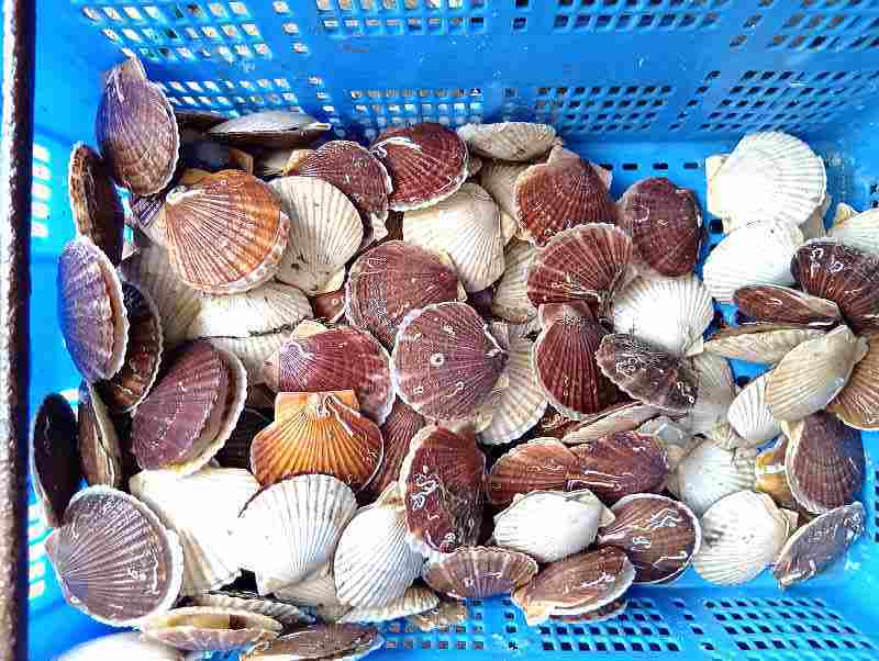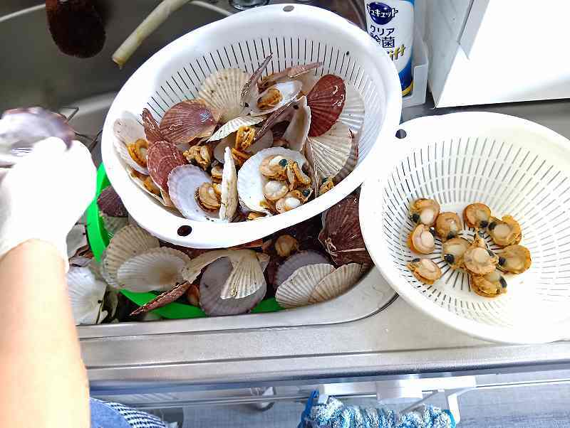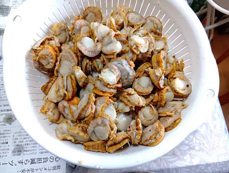 ホタテ養殖の漁業者から籠にいっぱいいただいたホタテ。