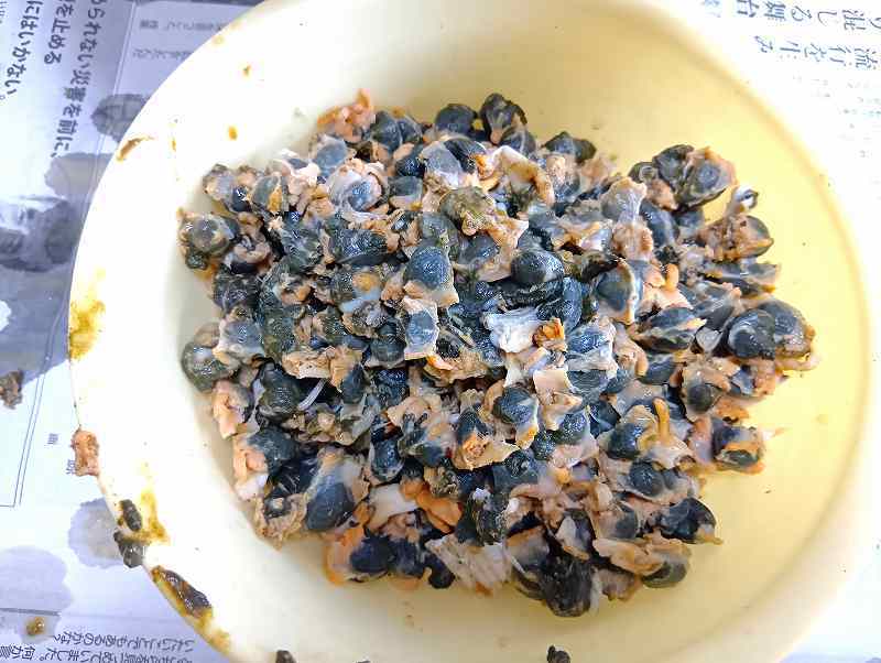 貝から身を取り出し、黒いウロを取り除きます。