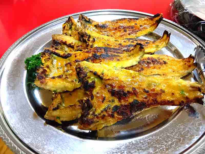 味噌をつけて焼くので、焦げ目が残ります。